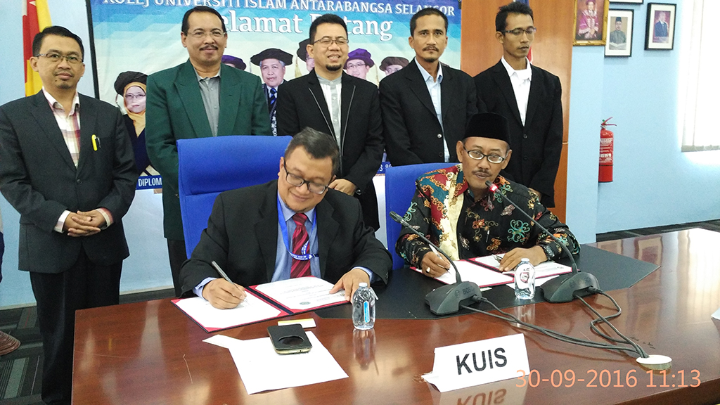 Bandar Seri Putra – Kolej Universiti Islam Antarabangsa Selangor (KUIS) telah menerima lawatan mahabbah daripada Sekolah Tinggi Keguruan dan Ilmu Pendidikan Qomaruddin Jawa Timur Indonesia pada 30 September 2016 dan telah menandatangani Memorandum Persefahaman MoU di antara KUIS dan STKIP Qomaruddin di dalam memperkasa jaringan kerjasama akademik dan pembangunan mahasiswa di peringkat antarabangsa. Rektor KUIS Prof Dato’ Ab. Halim bin Tamuri melahirkan rasa bangga dan gembira di atas kunjungan dan kesudian pihak STKIP Qomaruddin yang diketuai oleh YTH Drs. H. Moh Maghfur, M.Pd. Hasil perbincangan pihak KUIS dan STKIP Qomaruddin bersetuju untuk terus melebarkan dan mepelbagaikan jaringan kerjasama khususnya di dalam pertukaran pensyarah dan program mobiliti pembangunan mahasiswa, penganjuran seminar dan konvensyen, penerbitan jurnal serta penyelidikan, yang dapat memberikan impak yang positif kepada kedua-dua pihak. Turut hadir di dalam majlis ini, Dr. Zulkifli bin Abd Hamid Timbalan Rektor Pengurusan Korporat, Timbalan Rektor Pembangunan Mahasiswa dan Alumni Dr Mokmin bin Basri , Dekan Fakulti Pengajian Peradaban Islam, Dekan Fakulti Pendidikan, Timbalan Dekan serta para Pensyarah Fakulti Pendidikan. Majlis Menandatangani MoU telah berlangsung dengan jayanya dan diakhiri dengan penyampian cenderhati dan sesi photografi. Pertemuan kali ini sangat harmoni dipenuhi dengan perasaan mahabbah dan ukhwah di antara KUIS dan STKIP Qomaruddin yang dapat memperkasa ikatan persahabatan dan silaturrahim. Semoga Allah sentiasa memberkati pertemuan dan majlis ini. Ameen. |